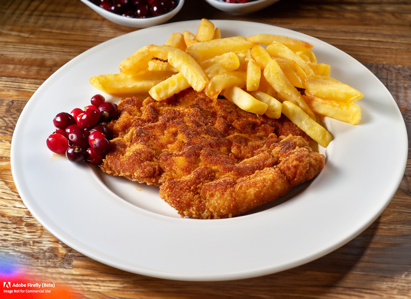 mit Pommes frites und Preiselbeeren